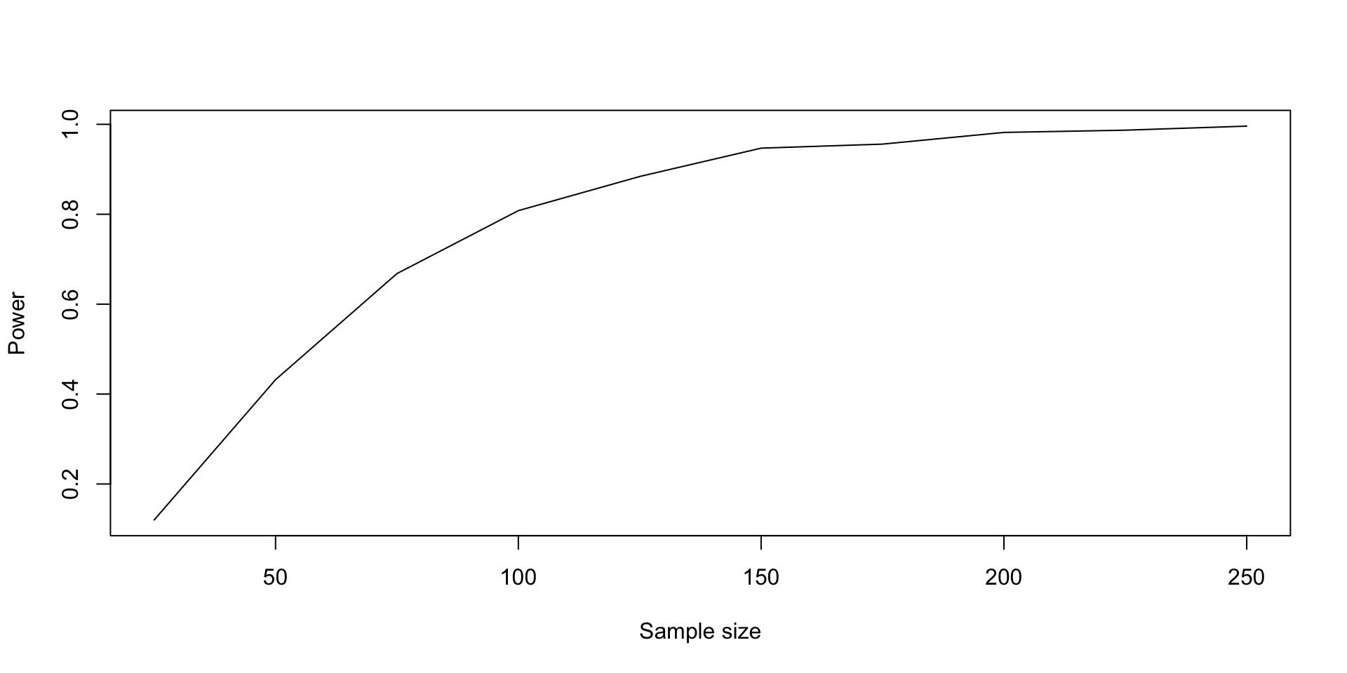 lapply() this function over multiple values of n (this is easy if you assume n1 and n2 are equal).simulate_t_test_power <- function(N_sim, n1, n2, mu1, mu2, sd1, sd2, alpha = 0.05) {